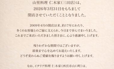 仁木家TOP > 山里料理 仁木家 > お品書き(山里料理) > 7月、8月 メニューのご案内 (2024) 2024年06月30日 季節を感じる艶やかな色彩をキャンバスに描いた一皿一皿新鮮素材をクラッシックな味付けで表現し見る楽しみ、食べる喜び、心が和む料理の提供をいたします皆様のお越しをお待ちしております! 写真はイメージ。仕入の状況により料理内容が変更になることがございます。 写真はイメージ。仕入の状況により料理内容が変更になることがございます。 ← 前へ 次へ →